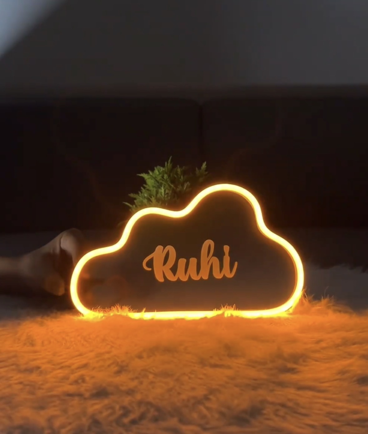 Forme nuage (dimensions ~ 27 cm x 16,5 cm) en bois découpé au laser, décorée d’un Neon (couleur de votre choix)